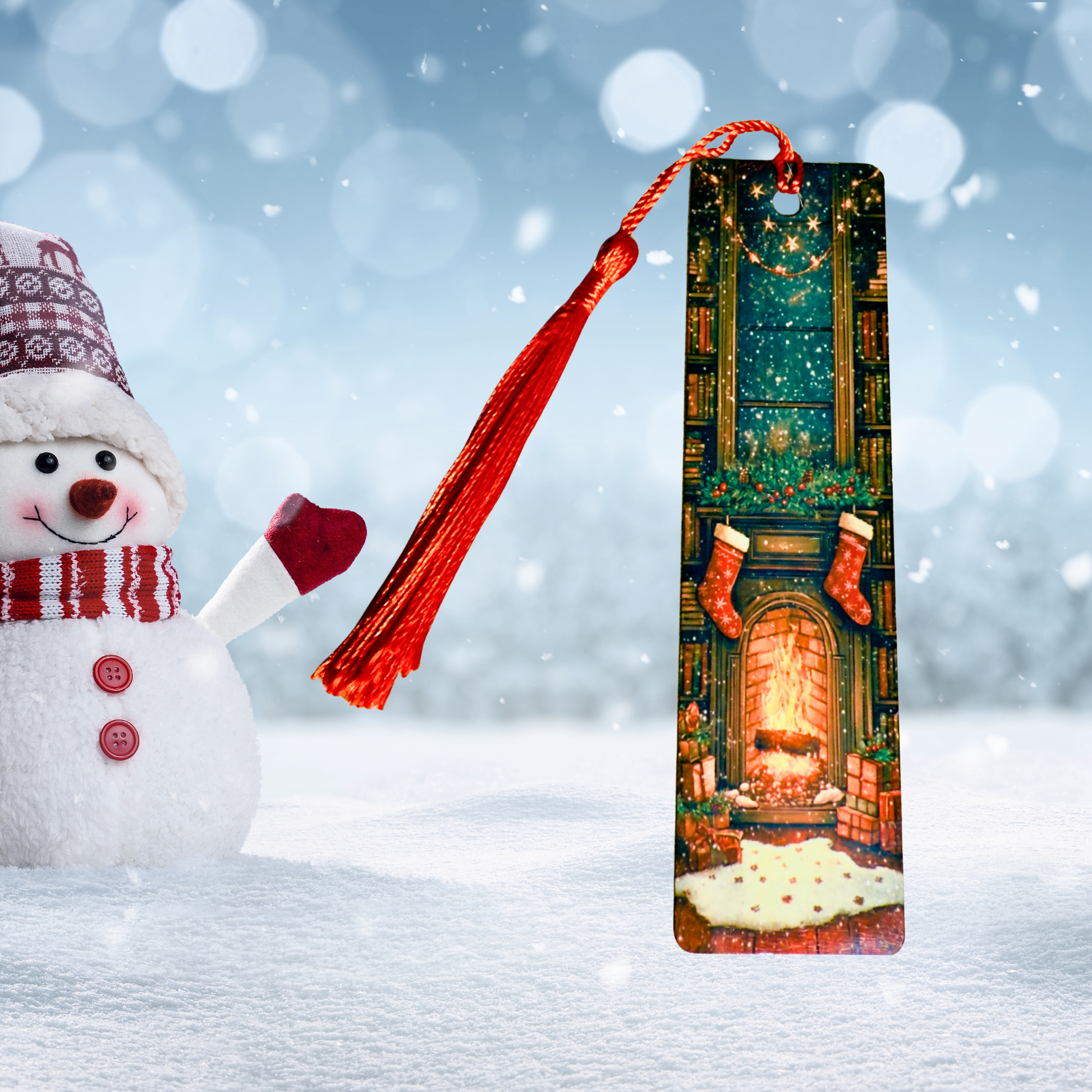 Ajoutez une pincée de douceur à votre temps de lecture avec notre marque-page en aluminium ! Il comporte d' adorable chaussettes de Noël posé sur une cheminée qui crépite. Fini avec un petit pompon assortiment qui lui donne un charme hivernal confortable. ✨