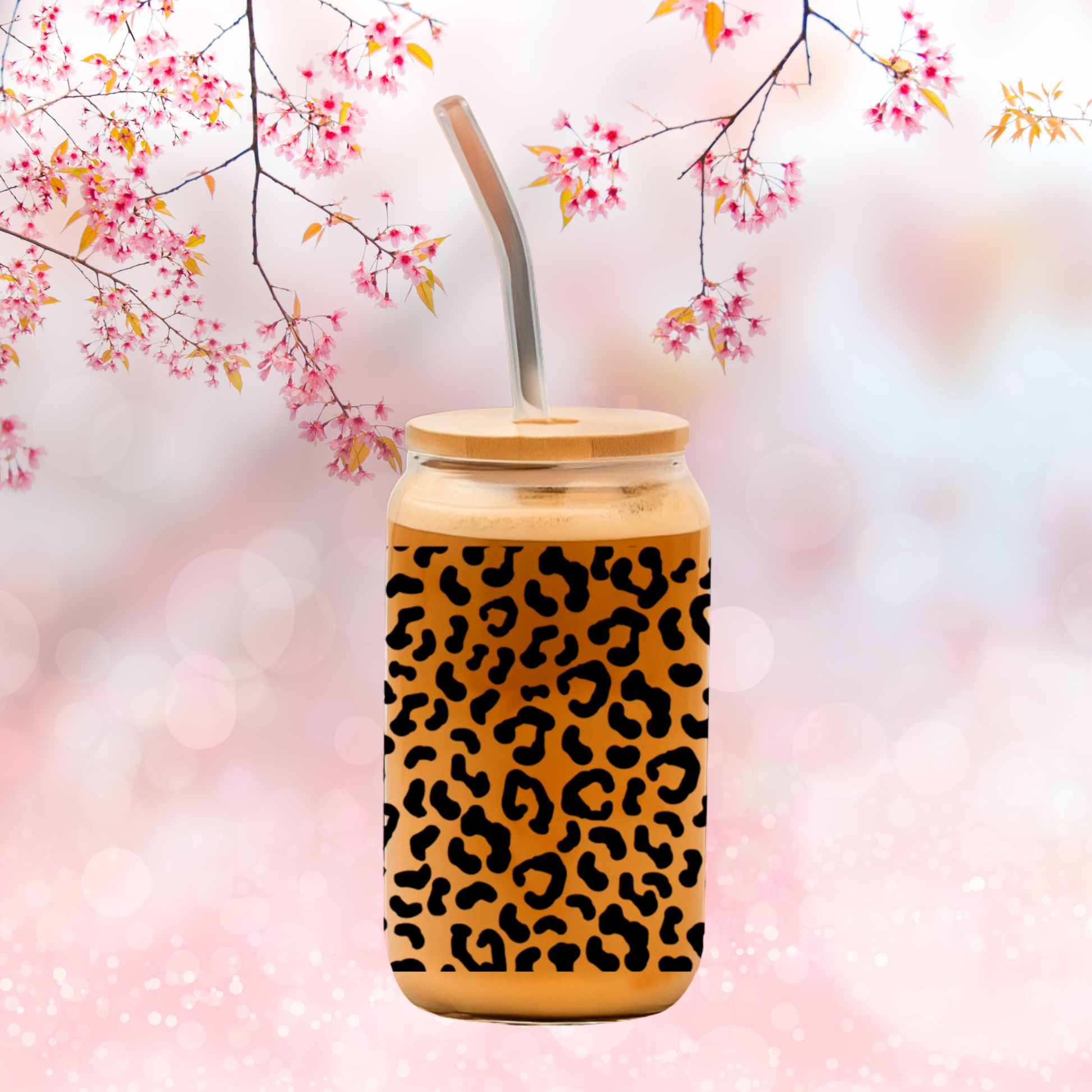 - verre en verre, couvercle en bambou, paille en verre
